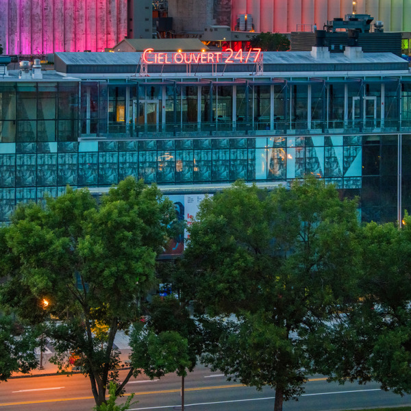 Ce projet signature de Québec, ville de littérature UNESCO met en valeur cinq fragments poétiques d’artistes de Québec et de Wendake, en français et en wendat. Ces fragments en néon sont installés sur les toits depuis l'été 2021 et illuminent la ville.